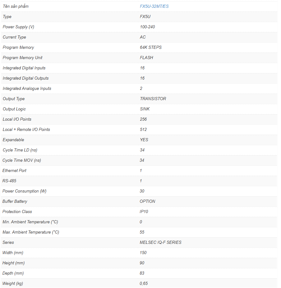– FX5U cung cấp đa đầu vào ra và có khả năng mở rộng lên tới 512