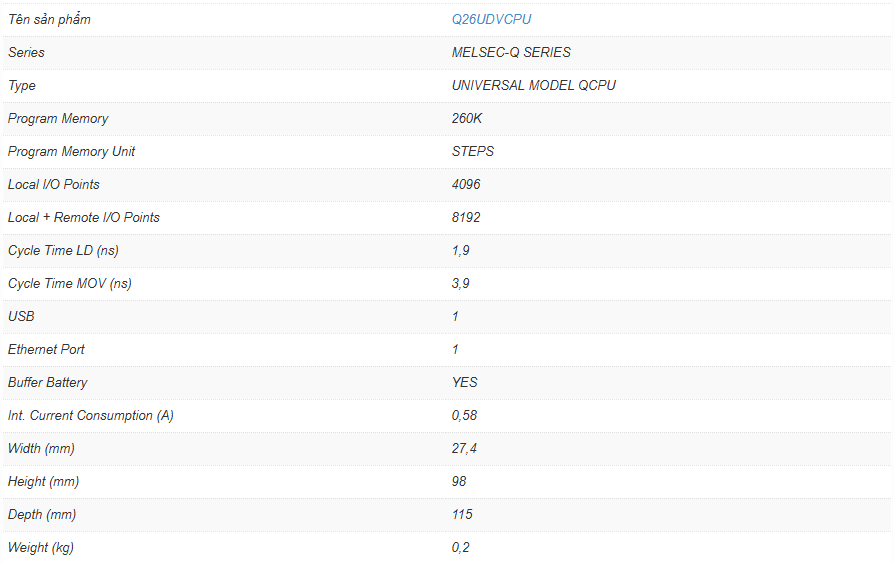 Q26UDVCPU là dòng Plc MELSEC-Q Điều Khiển quá trình của Mitsubishi electric với những ưu điểm sau: